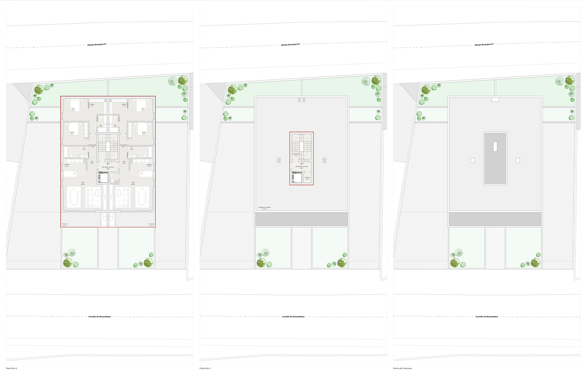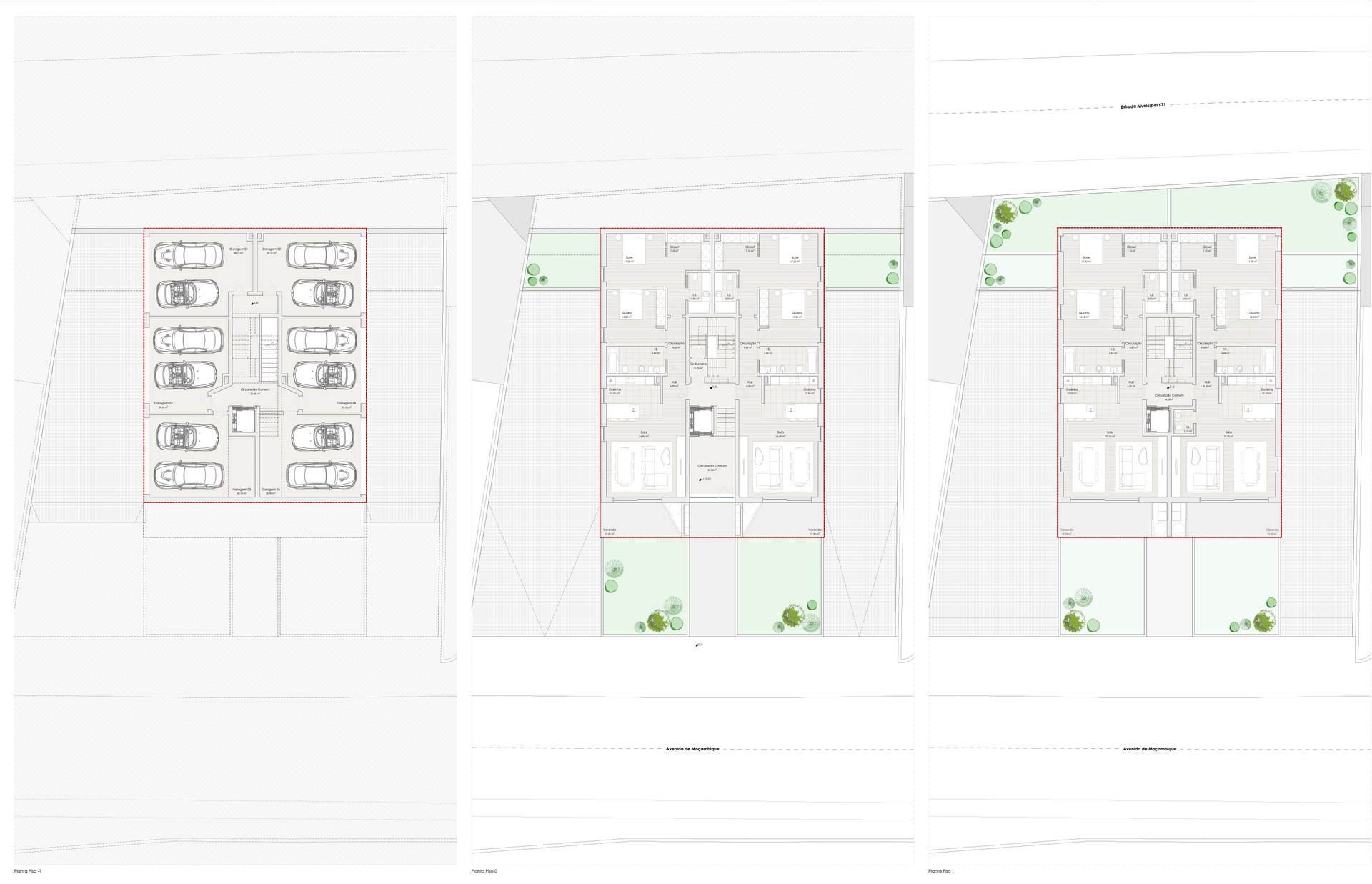 O imóvel é composto por 3 pisos superiores acessíveis por elevador, res-de-chão e piso inferior com garagens privadas.
