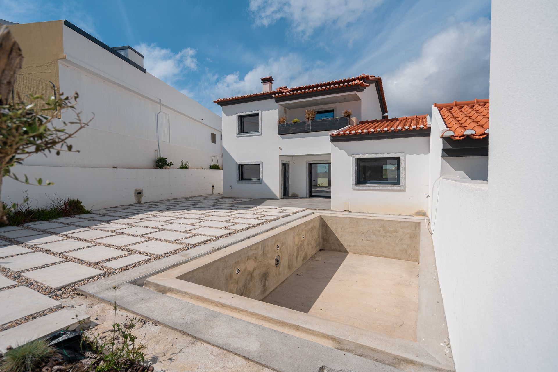 A moradia está em fase final de construção, oferecendo ao cliente a exclusiva oportunidade de escolher os acabamentos finais, como pisos, cozinha, carpintaria e até a cor do liner da piscina.