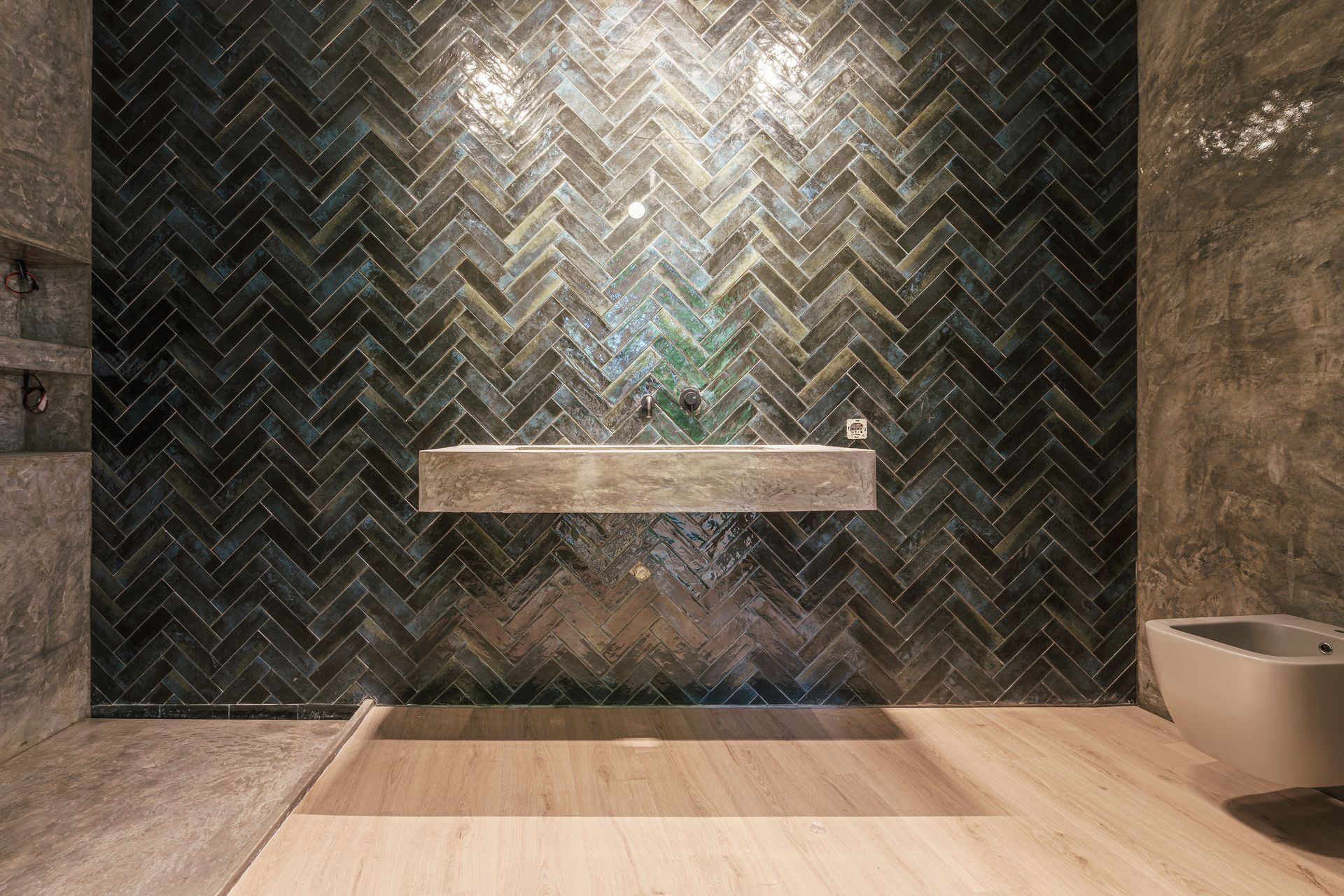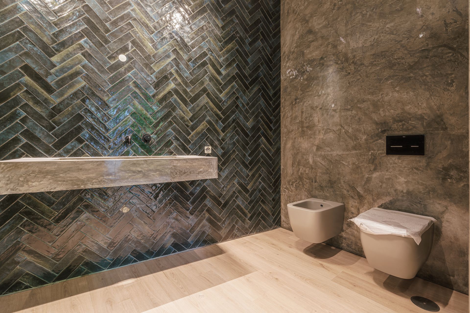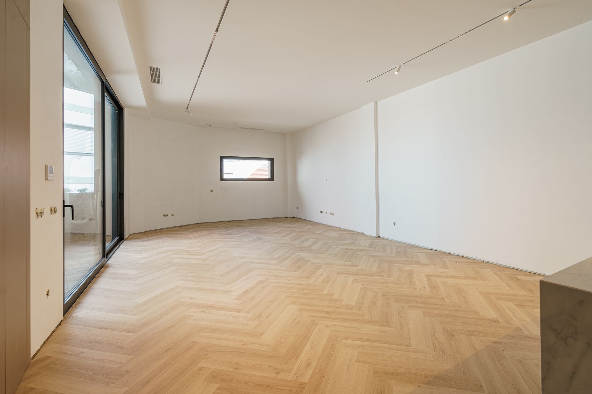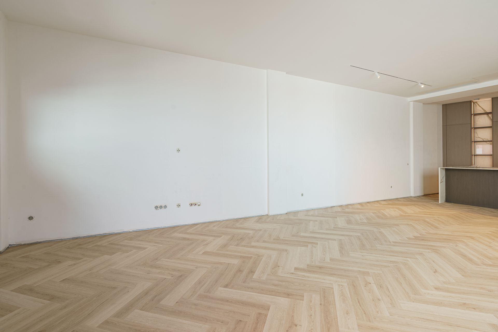 - Portas interiores embutidas e até ao teto, conferindo um visual contínuo e elegante entre as divisões.