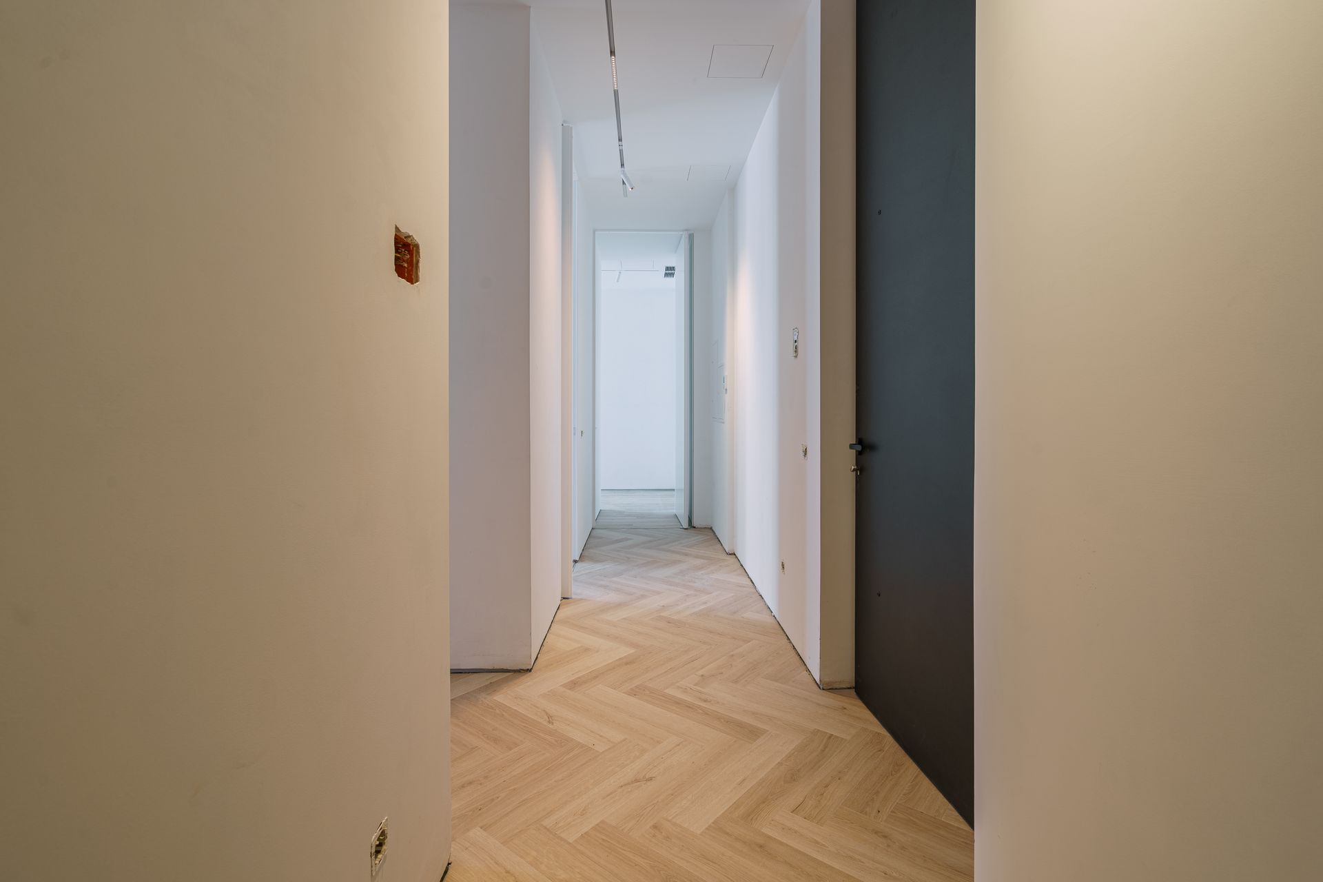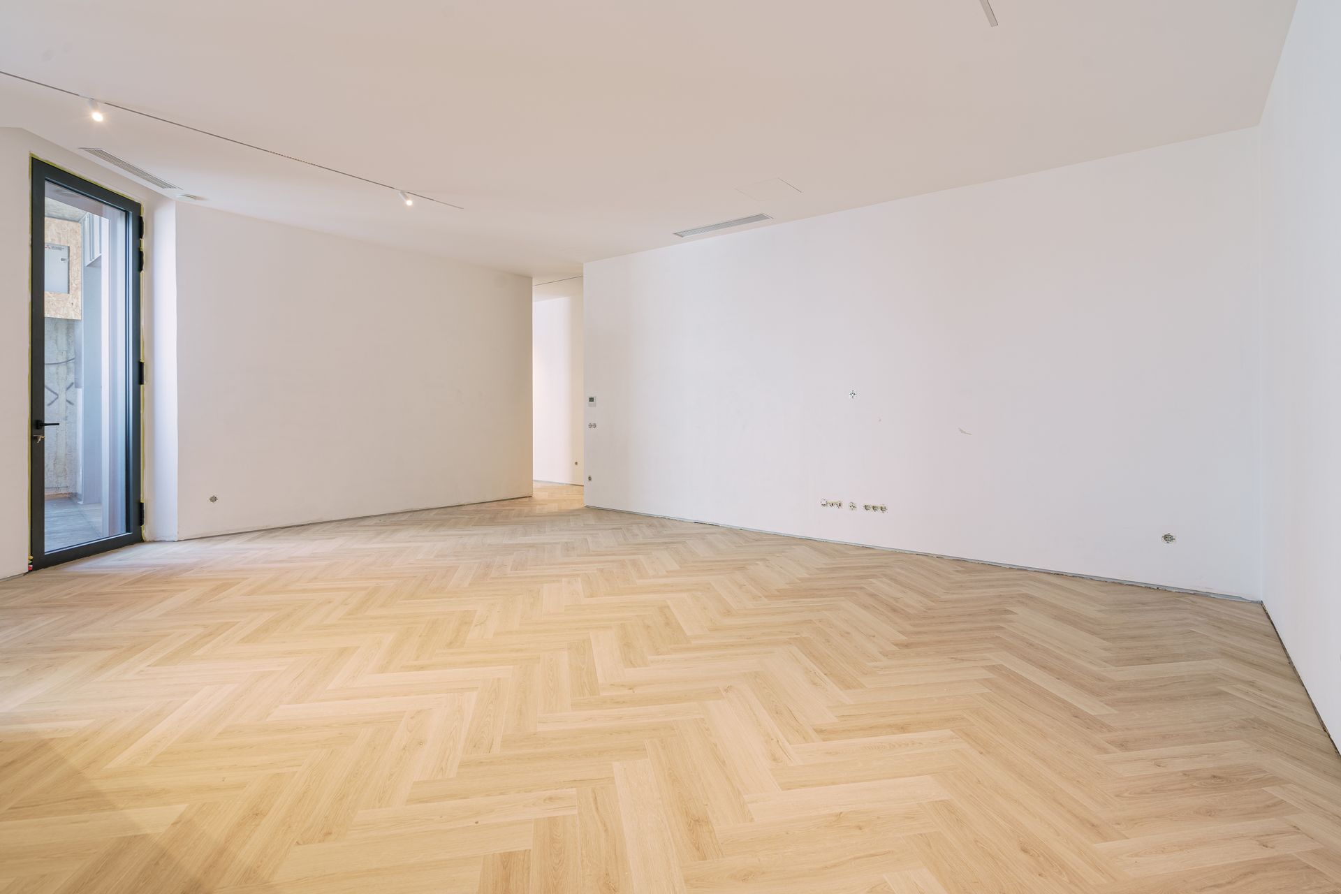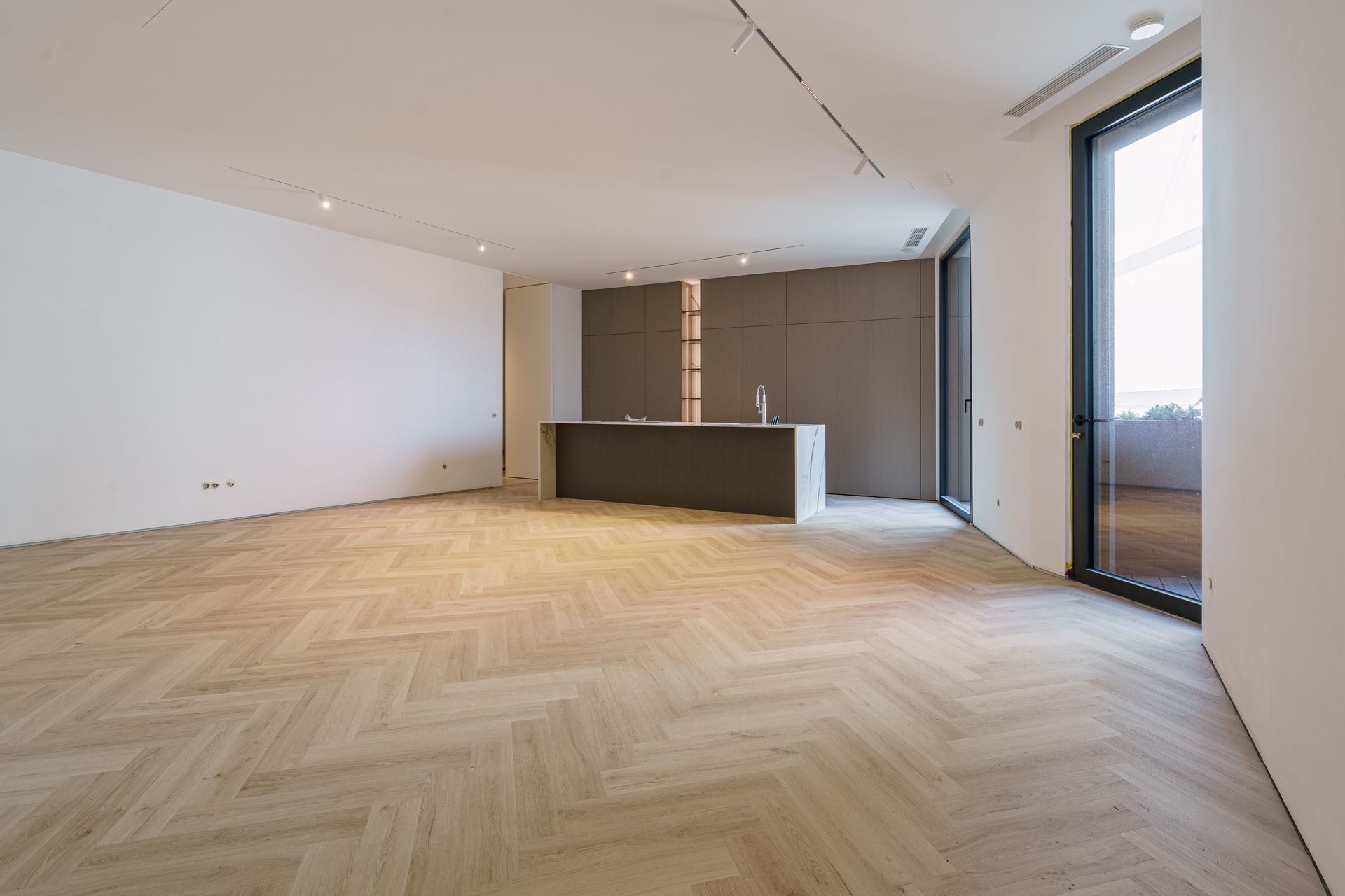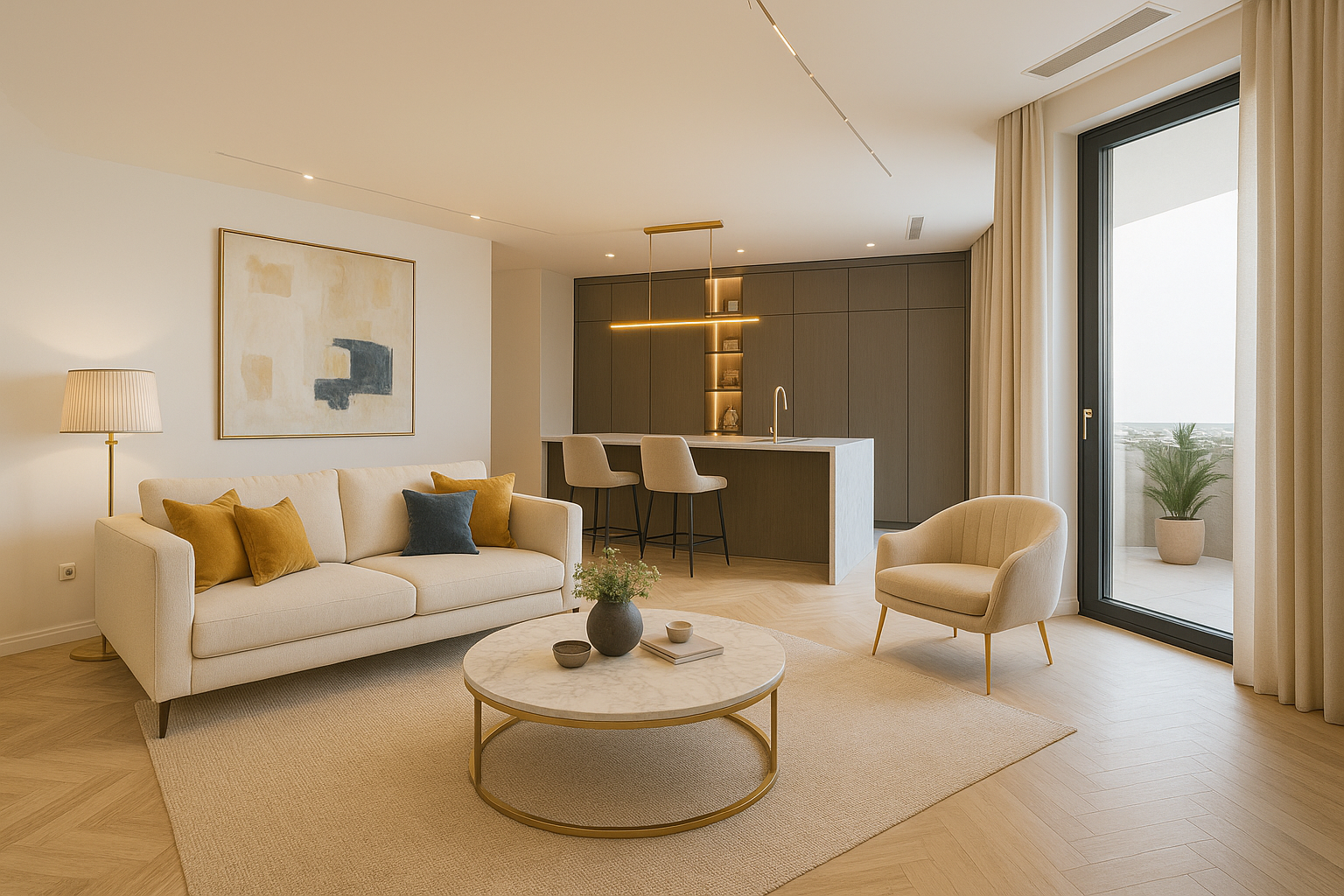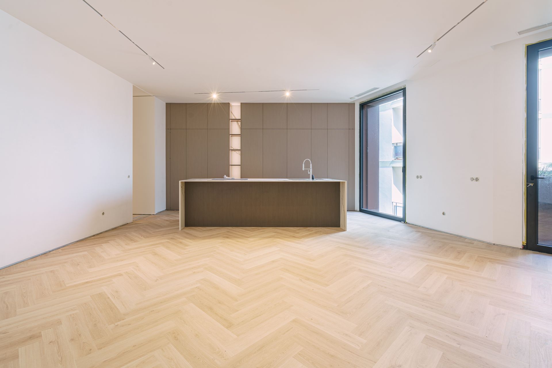 - Portas interiores embutidas, até ao teto, e janelas de grandes dimensões, que favorecem a entrada abundante de luz natural, criando uma atmosfera acolhedora e elegante em todo o apartamento.