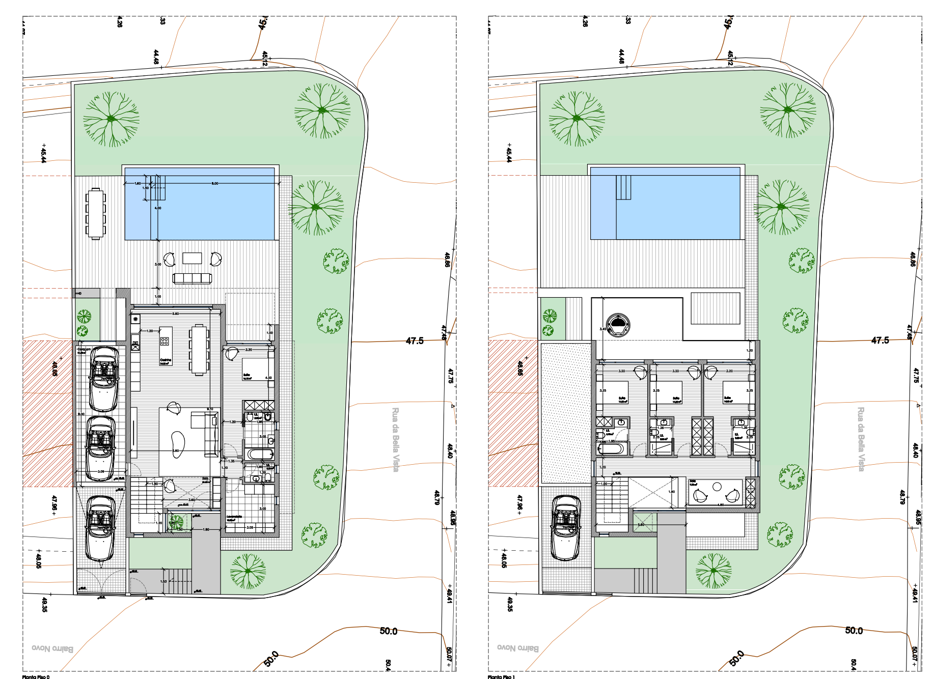 Lote de terreno com projeto para construção de moradia de 282m2 composta por 2 pisos com 4 quartos suites, garagem e piscina privada.